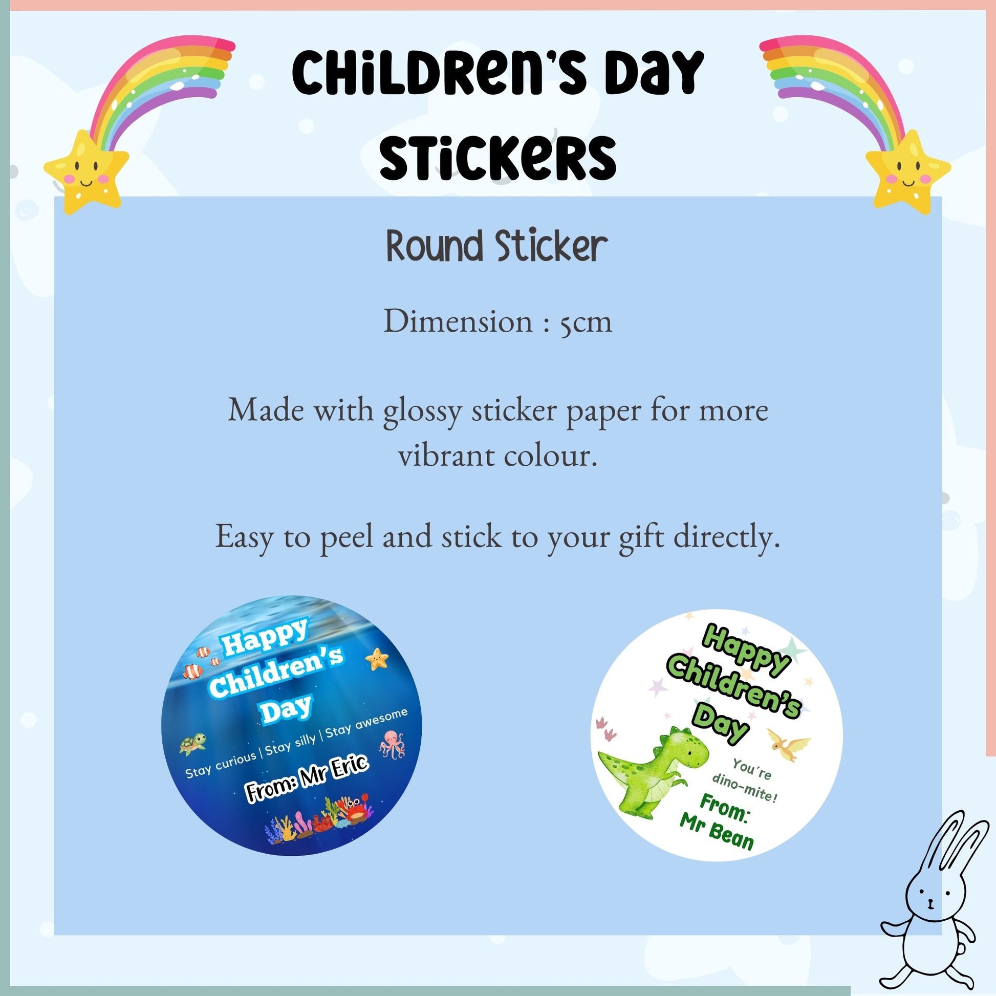 Whether you’re preparing goodie bags or a heartfelt gift, our customisable Children’s Day stickers are the perfect finishing touch. Choose from 10 charming designs, and add your name or message to make it uniquely yours.