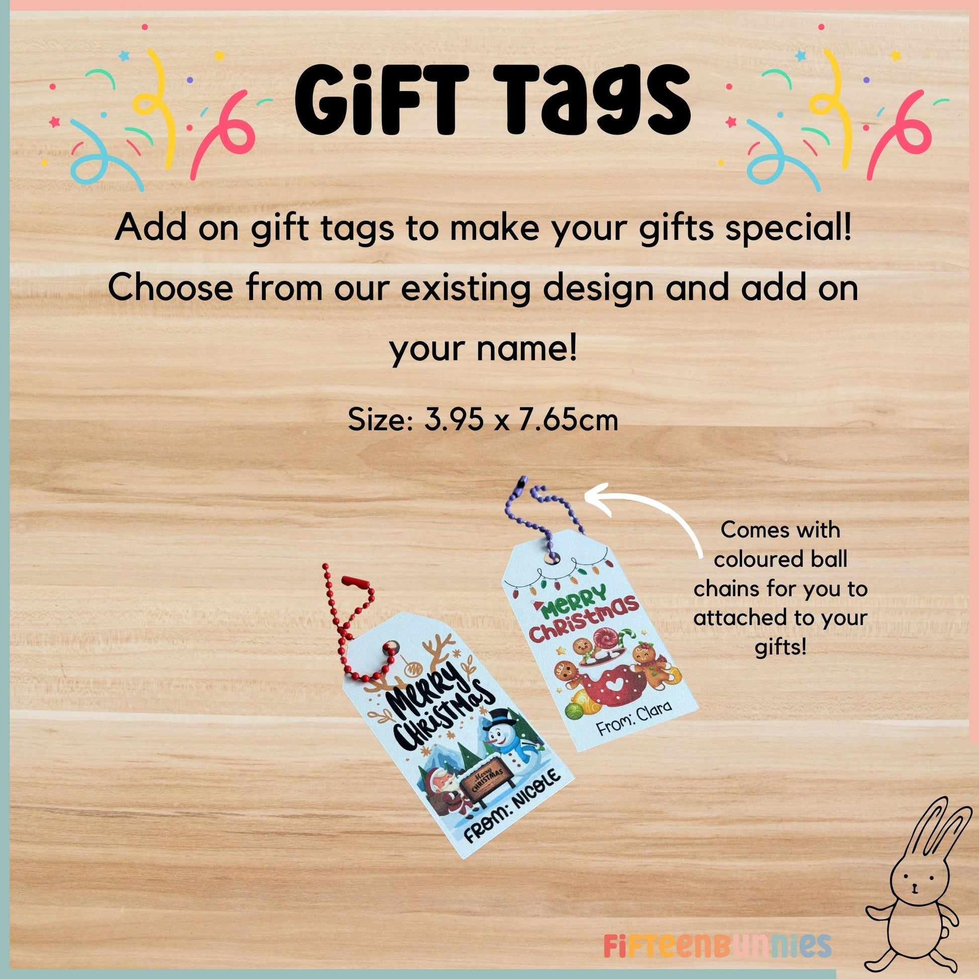 Add a touch of holiday magic to your gifts with our Christmas-themed gift tags! Perfect for adding a festive flair to any present, these tags feature adorable Christmas designs and space for a personalized message. Whether it’s for a kids’ goodie bag or a thoughtful holiday gift, these tags make every package feel a bit more special and merry. Spread the joy and make your holiday gifting unforgettable with our charming Christmas gift tags!