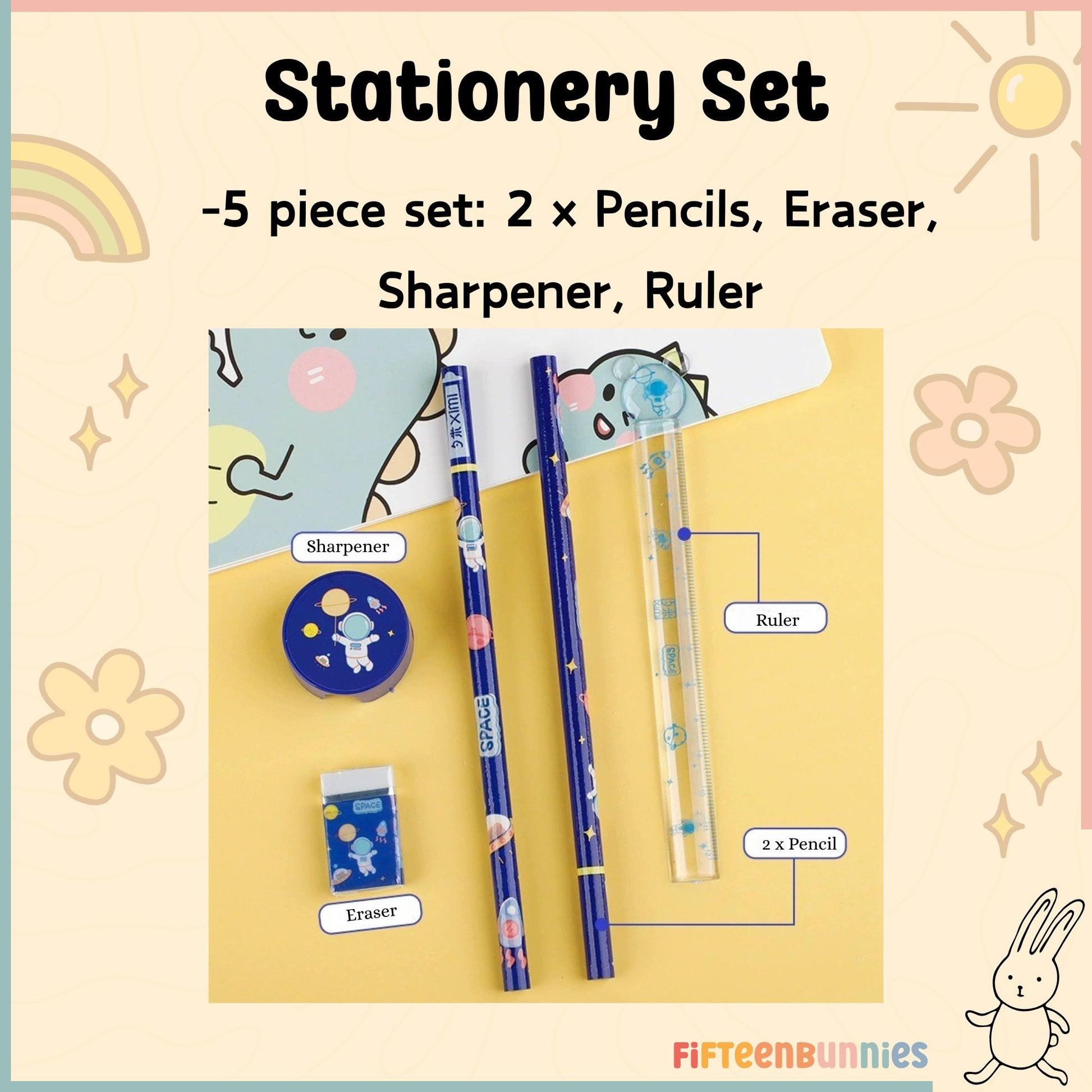 Prepare for a productive day with our 5-Piece Stationery Pouch Set! This essential kit includes everything you need for writing and drawing tasks, featuring two pencils, a ruler, an eraser, and a sharpener. Whether you're jotting down notes, sketching ideas, or tackling homework assignments, this convenient set ensures you're equipped for success. Compact and portable, it's perfect for school, office, or on-the-go use. Stay organized and efficient with our 5-Piece Stationery Pouch Set - your go-to companion for all your writing needs!